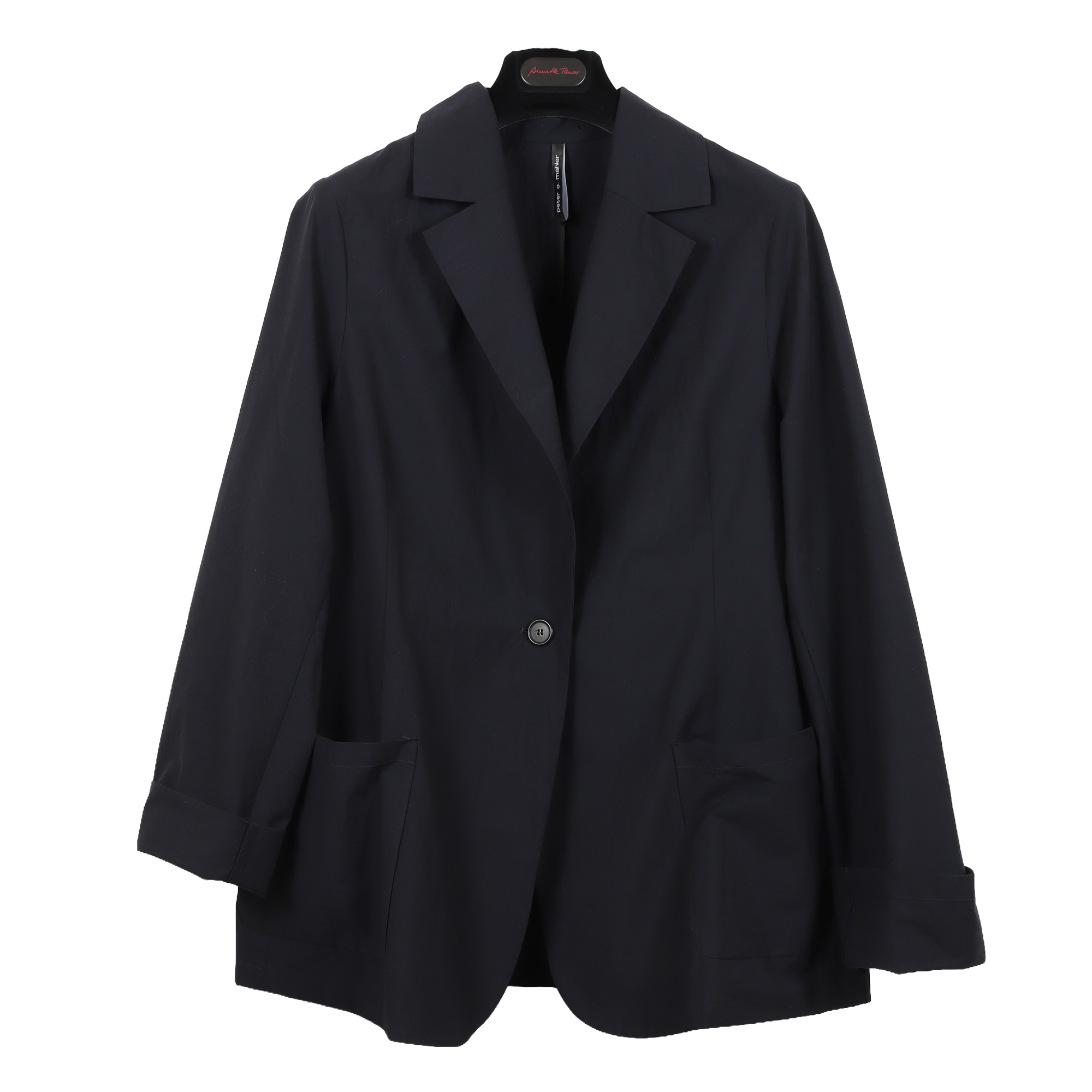 Klassischer 1 Knopf Reversblazer in Dark Navy mit aufgesetzten Taschen und umschlagbaren Ärmeln. Rückenlänge bei Größe 3: 74 cm. Material und Pflege: 100 % BW. Schonwaschgang.