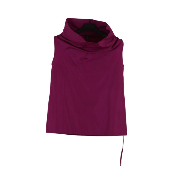 Ärmelloses Top in fuchsia aus hochwertigem italienischem Taft mit Stehkragen. Rückenlänge bei Gr. 1: 65 cm. Material und Pflege: 100 % Polyester, recycled reborn. Schonwaschgang.